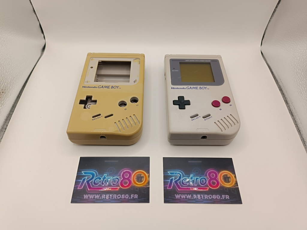 Avant → Après sur Game Boy classique jaunissant :