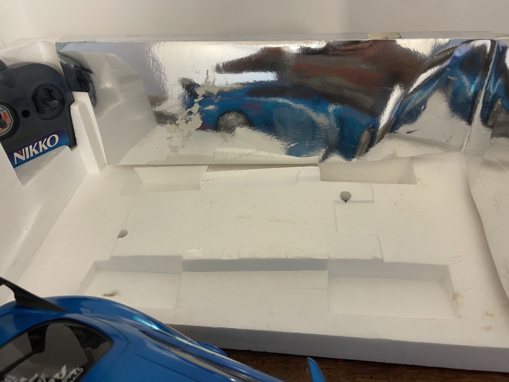 La voiture est en bon état, traces d usures sur la peinture. La Batterie tiens la charge et le chargeur fonctionne. Télécommande fonctionne sur pile 9v